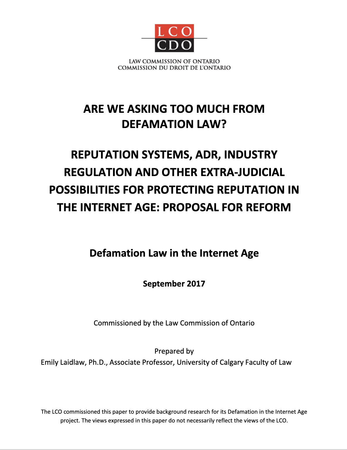 Are we asking too much from defamation law? Reputation systems, ADR, Industry Regulation and other Extra-Judicial Possibilities for Protecting Reputation in the Internet Age | Commissioned Study