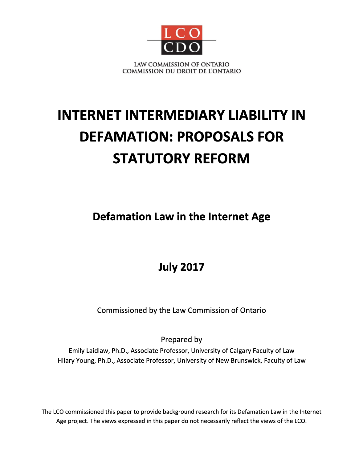 Internet Intermediary Liability in Defamation: Proposals for Statutory Reform | Commissioned Study