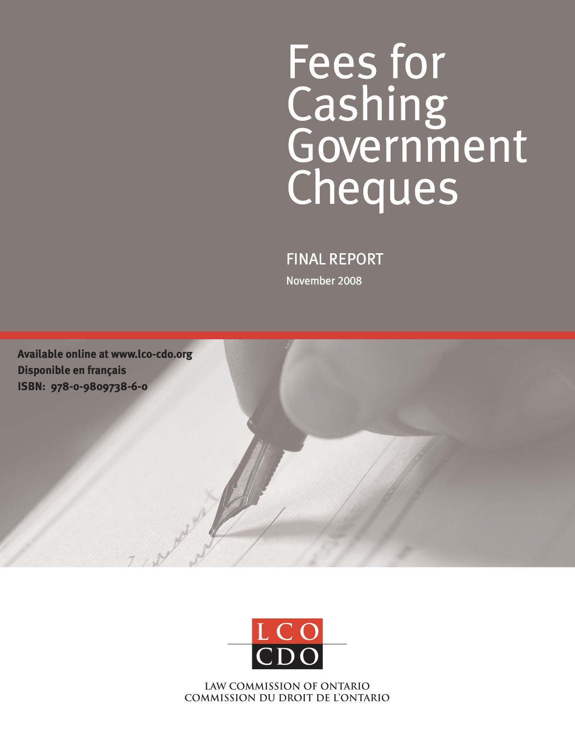 - Fees for Cashing Government Cheques (Anglais, PDF)