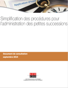 Balancing Accessibility and Procedural Protection in a Small Estates Probate Procedure in Ontario (disponible en anglais seulement) – Christine M. Hakim – Janvier 2015